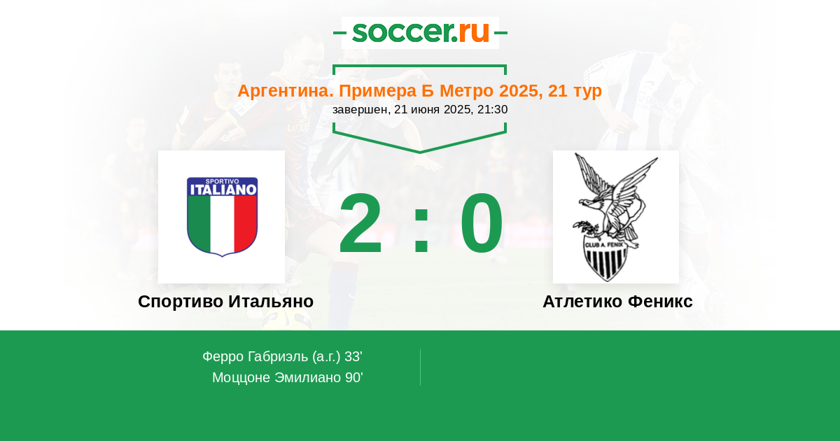 Спортиво Итальяно - Атлетико Феникс: обзор матча 21 июня 2025