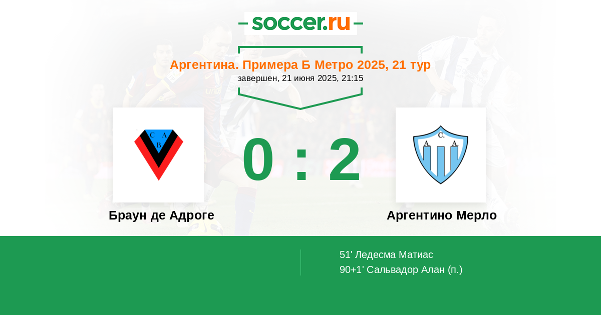 Браун де Адроге - Аргентино Мерло: обзор матча 21 июня 2025