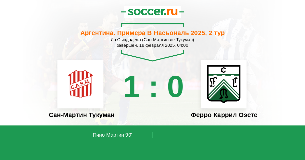 Сан-Мартин Тукуман - Ферро Каррил Оэсте: обзор матча 18 февраля 2025
