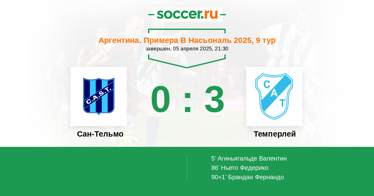 Сан-Тельмо - Темперлей: обзор матча 5 апреля 2025