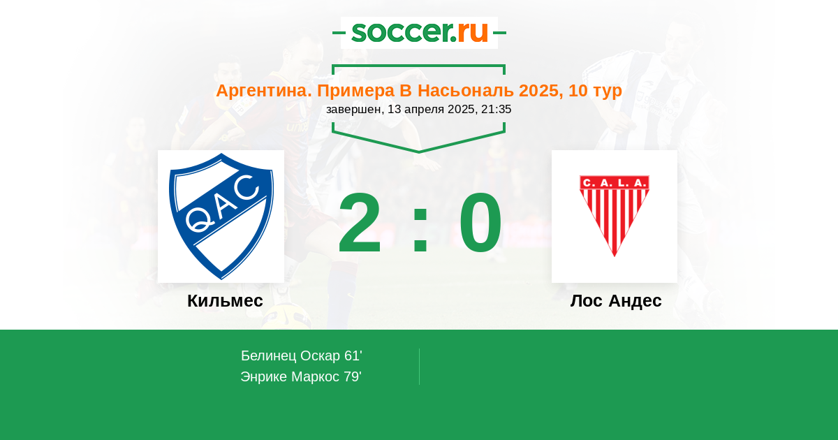 Кильмес - Лос Андес: обзор матча 13 апреля 2025