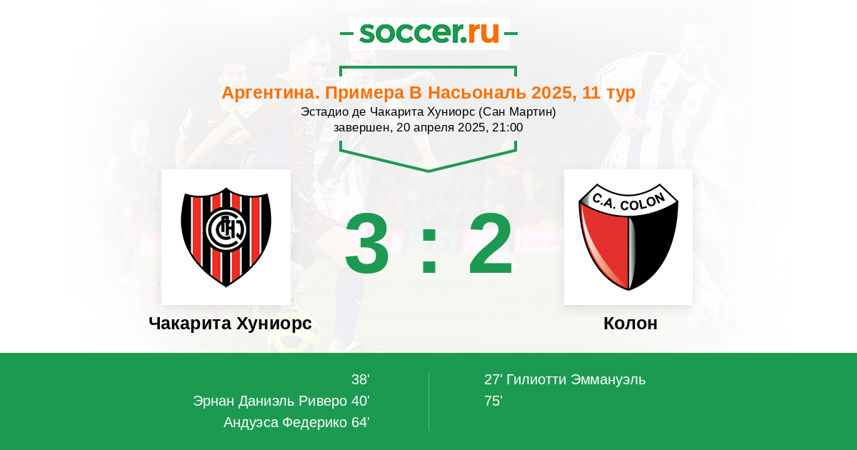 Чакарита Хуниорс - Колон: обзор матча 20 апреля 2025