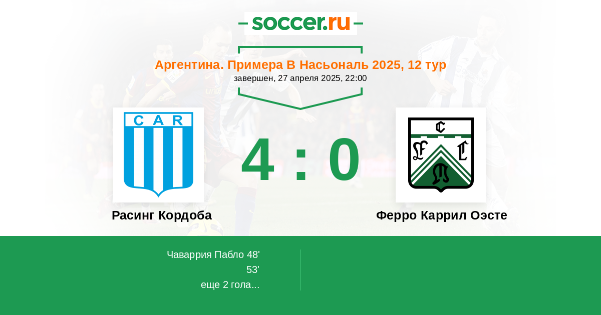 Расинг Кордоба - Ферро Каррил Оэсте: обзор матча 27 апреля 2025