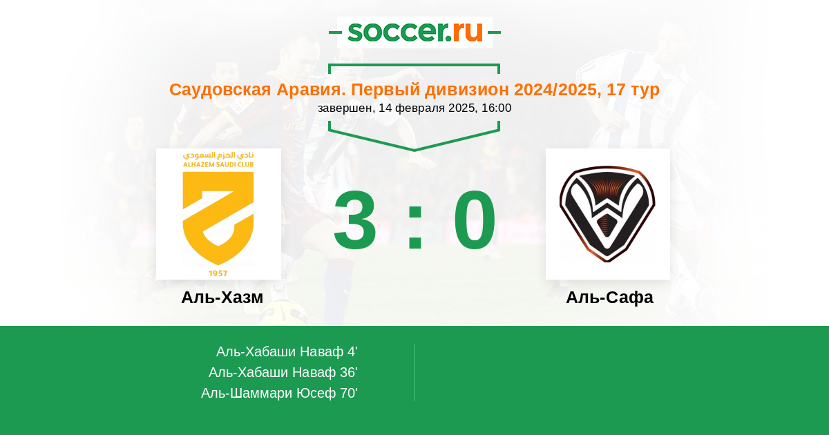 Аль-Хазм - Аль-Сафа: обзор матча 14 февраля 2025