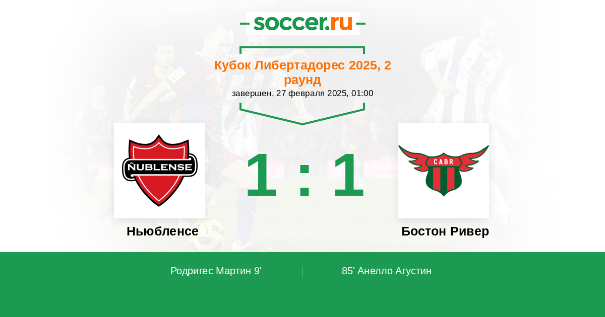 Ньюбленсе - Бостон Ривер: обзор матча 27 февраля 2025