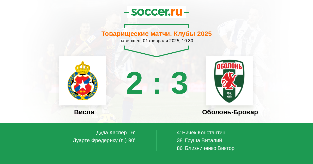 Висла - Оболонь-Бровар: обзор матча 1 февраля 2025