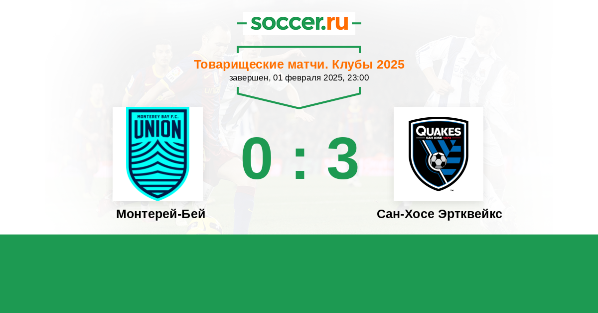 Монтерей-Бей - Сан-Хосе Эртквейкс: обзор матча 1 февраля 2025