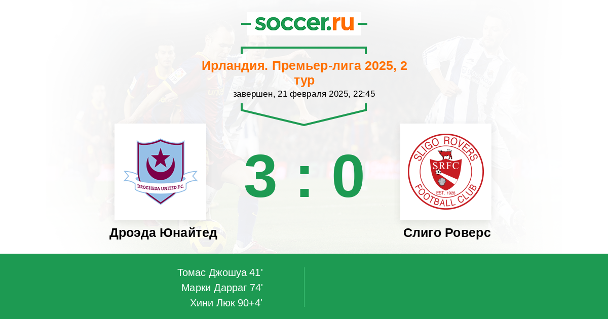 Дроэда Юнайтед - Слиго Роверс: обзор матча 21 февраля 2025