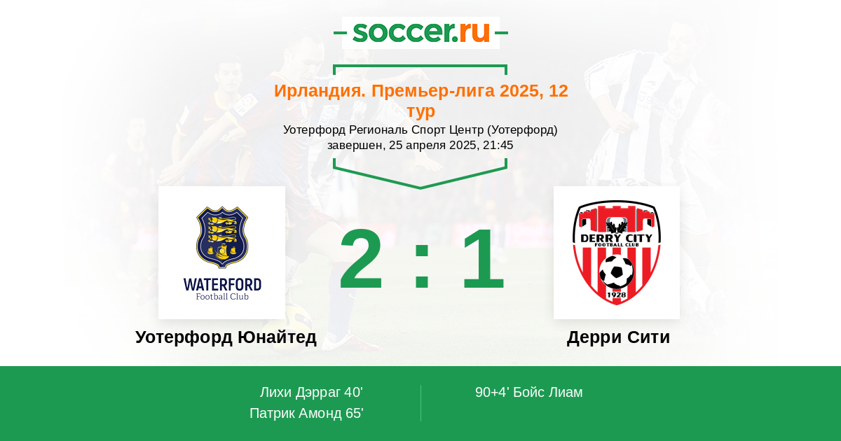 Уотерфорд Юнайтед - Дерри Сити: обзор матча 25 апреля 2025