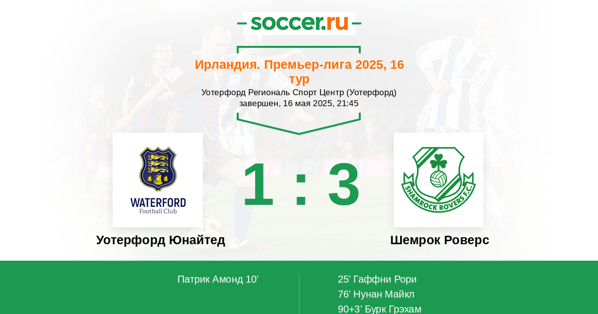 Уотерфорд Юнайтед - Шемрок Роверс: обзор матча 16 мая 2025