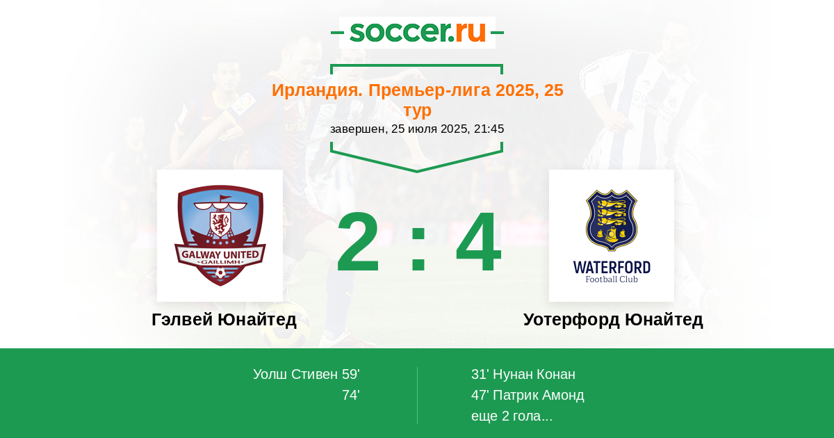 Гэлвей Юнайтед - Уотерфорд Юнайтед: обзор матча 25 июля 2025
