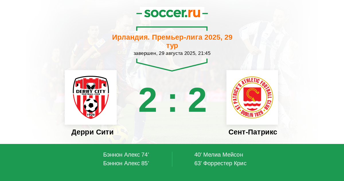 Дерри Сити - Сент-Патрикс: обзор матча 29 августа 2025