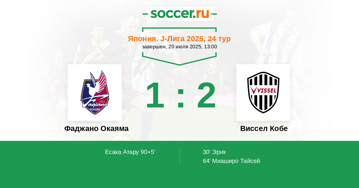 Фаджано Окаяма - Виссел Кобе: обзор матча 20 июля 2025