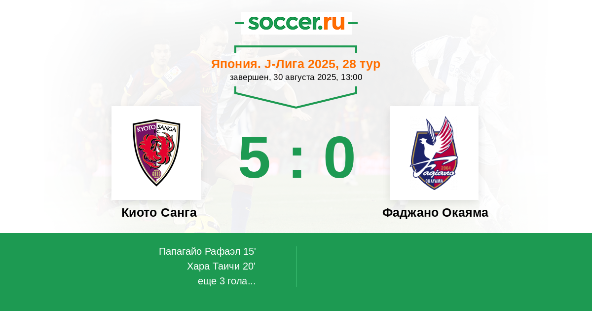 Киото Санга - Фаджано Окаяма: обзор матча 30 августа 2025
