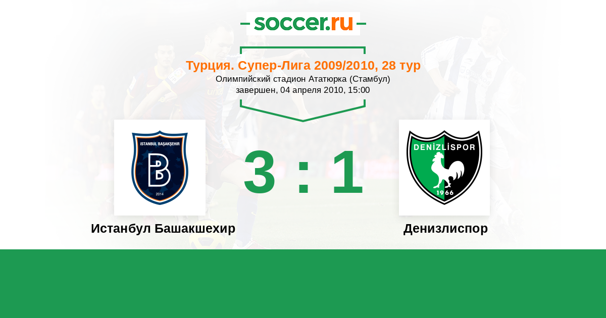 Истанбул Башакшехир - Денизлиспор: обзор матча 4 апреля 2010