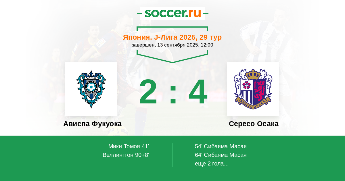 Ависпа Фукуока - Сересо Осака: обзор матча 13 сентября 2025