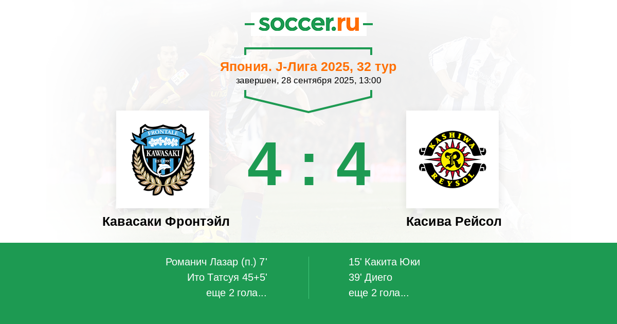 Кавасаки Фронтэйл - Касива Рейсол: обзор матча 28 сентября 2025