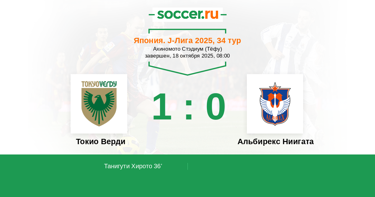 Токио Верди - Альбирекс Ниигата: обзор матча 18 октября 2025