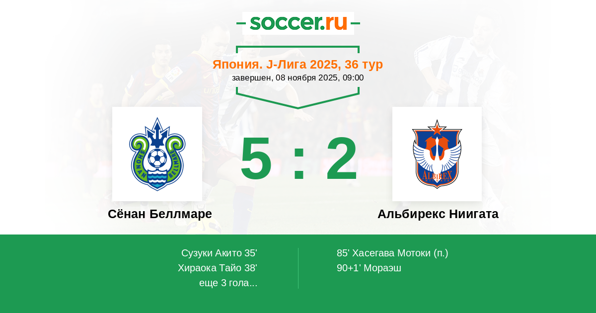 Сёнан Беллмаре - Альбирекс Ниигата: обзор матча 8 ноября 2025