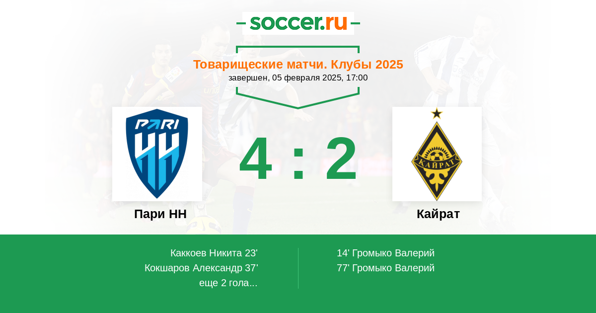 Пари НН - Кайрат: обзор матча 5 февраля 2025