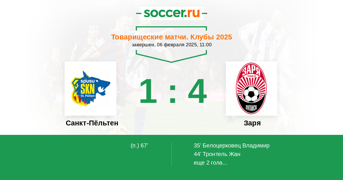 Санкт-Пёльтен - Заря: обзор матча 6 февраля 2025