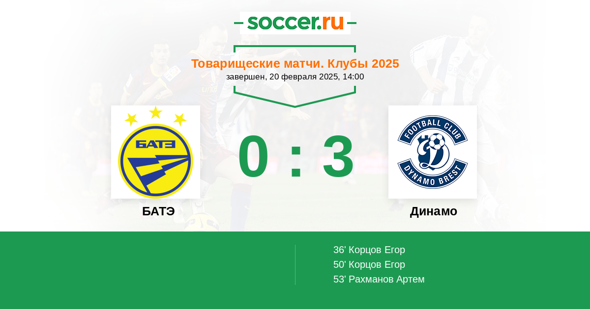 БАТЭ - Динамо: обзор матча 20 февраля 2025
