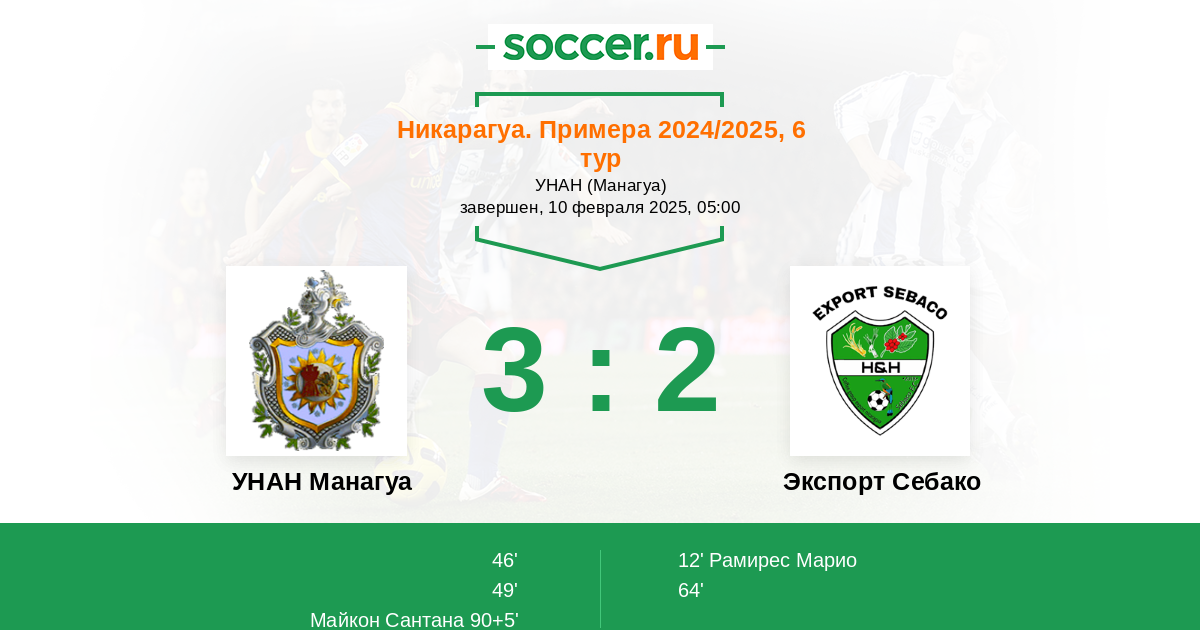 УНАН Манагуа - Экспорт Себако: обзор матча 10 февраля 2025