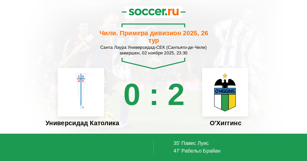 Универсидад Католика - О'Хиггинс: обзор матча 2 ноября 2025
