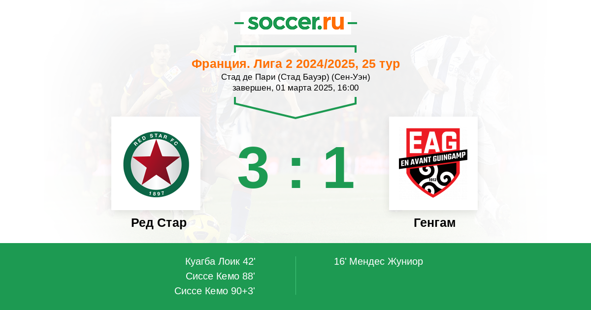 Ред Стар - Генгам: обзор матча 1 марта 2025