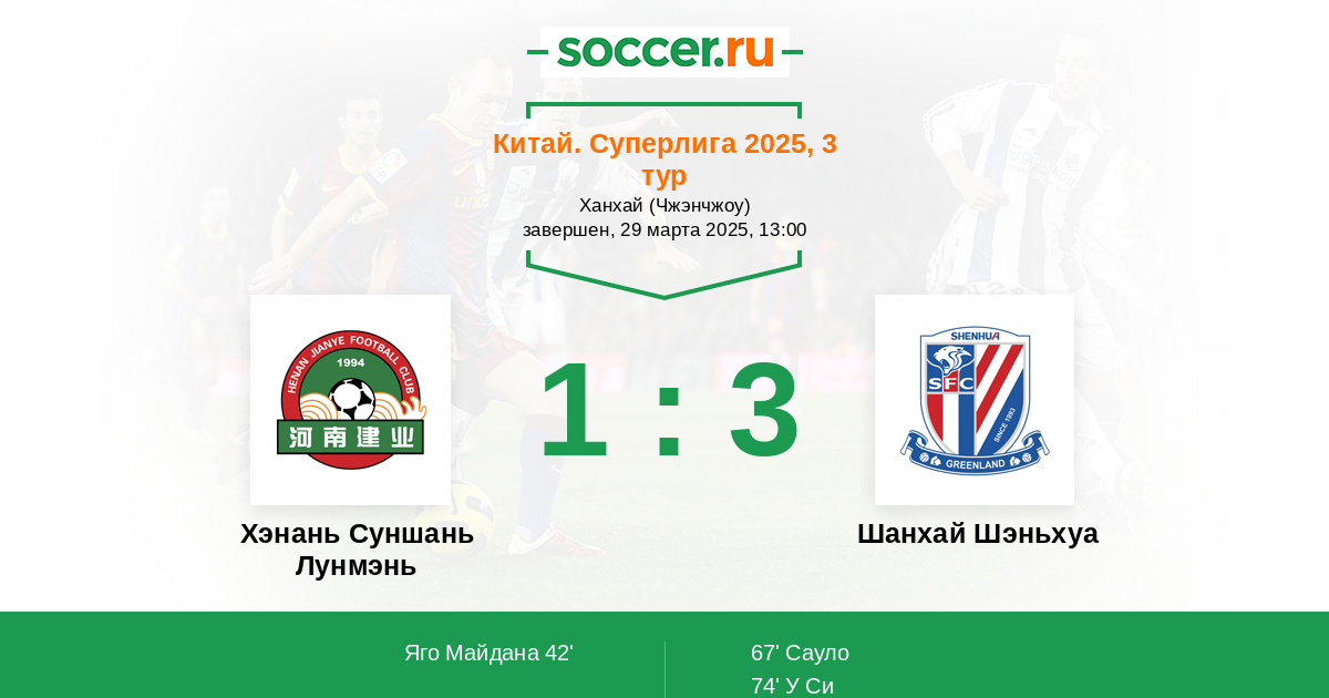 Хэнань Суншань Лунмэнь - Шанхай Шэньхуа: обзор матча 29 марта 2025