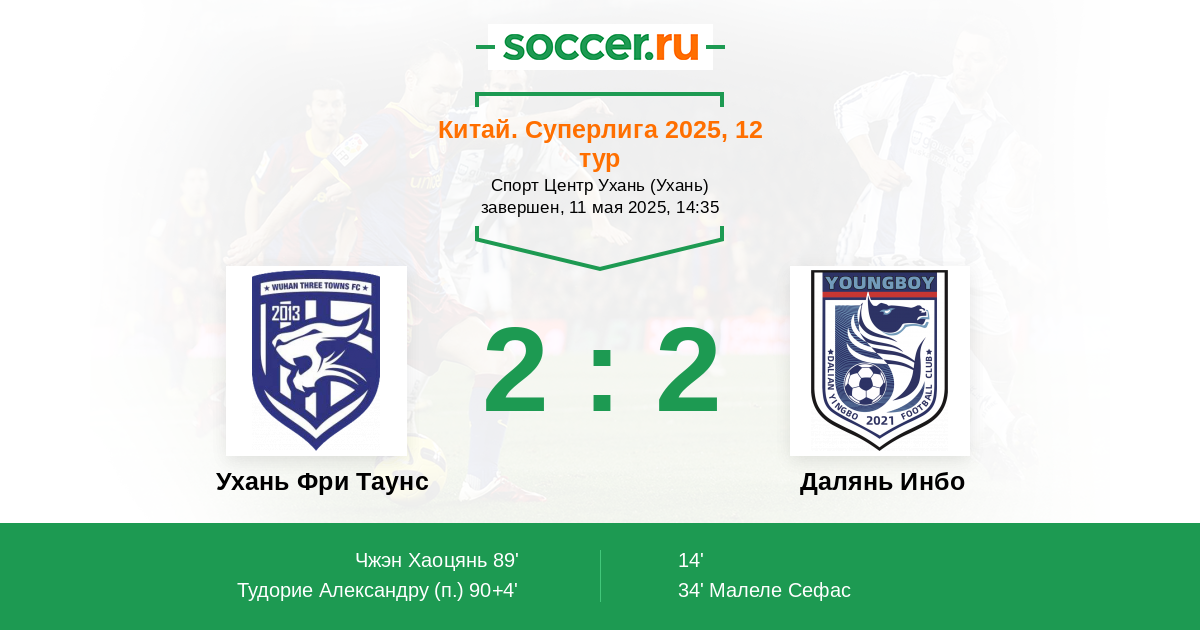 Ухань Фри Таунс - Далянь Инбо: обзор матча 11 мая 2025