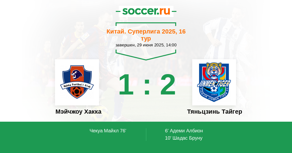 Мэйчжоу Хакка - Тяньцзинь Тайгер: обзор матча 29 июня 2025