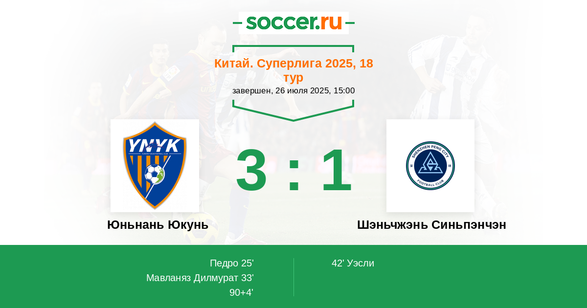 Юньнань Юкунь - Шэньчжэнь Синьпэнчэн: обзор матча 26 июля 2025