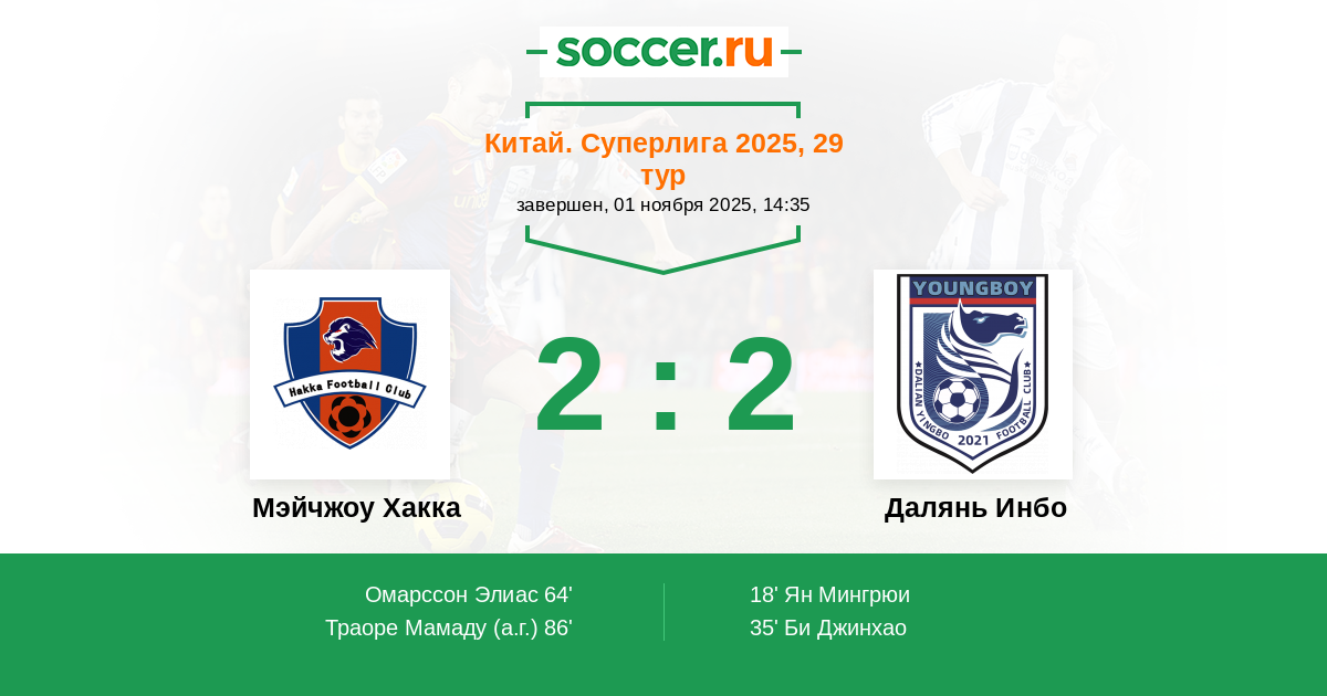 Мэйчжоу Хакка - Далянь Инбо: обзор матча 1 ноября 2025