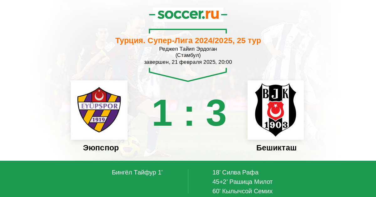 Эюпспор - Бешикташ: обзор матча 21 февраля 2025