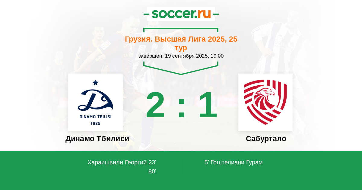 Динамо Тбилиси - Сабуртало: обзор матча 19 сентября 2025