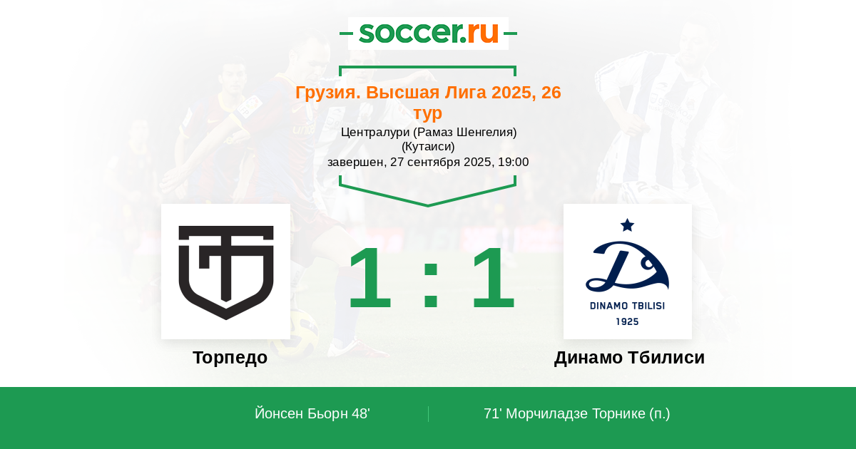 Торпедо - Динамо Тбилиси: обзор матча 27 сентября 2025