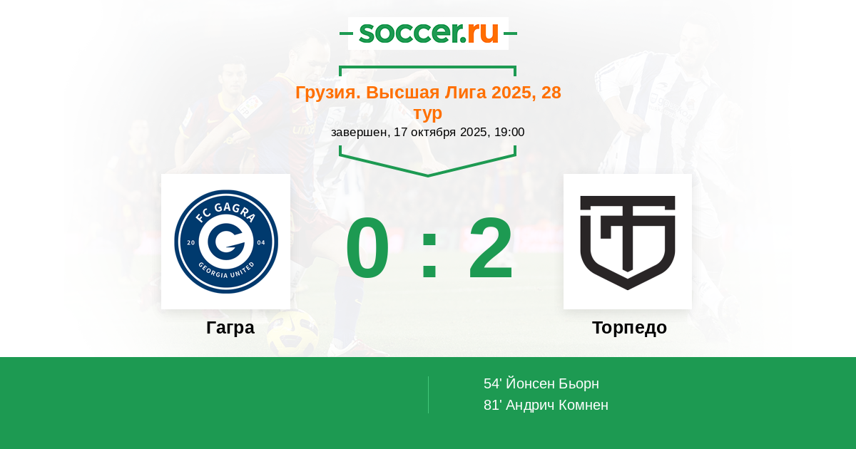 Гагра - Торпедо: обзор матча 17 октября 2025