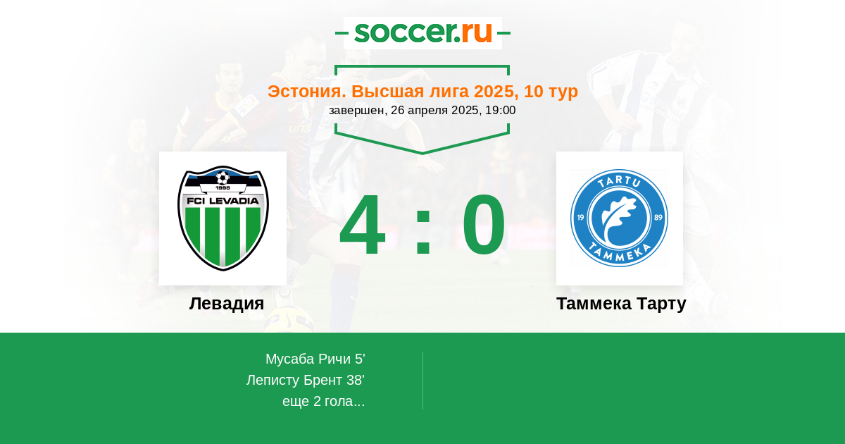 Левадия - Таммека Тарту: обзор матча 26 апреля 2025