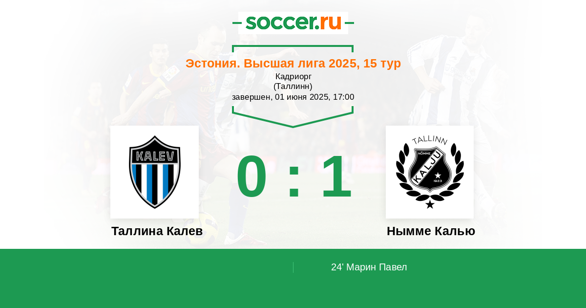 Таллина Калев - Нымме Калью: обзор матча 1 июня 2025