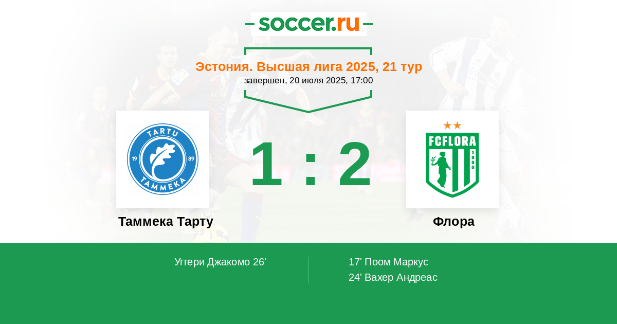 Таммека Тарту - Флора: обзор матча 20 июля 2025