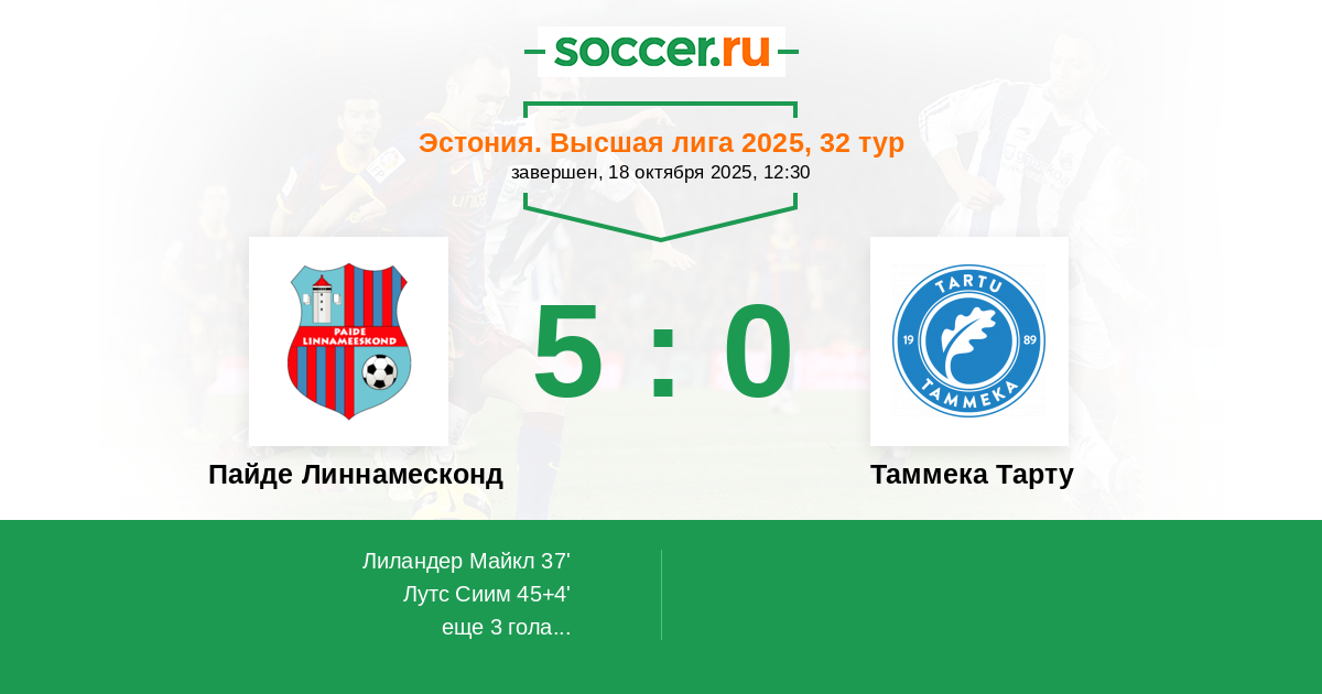 Пайде Линнамесконд - Таммека Тарту: обзор матча 18 октября 2025