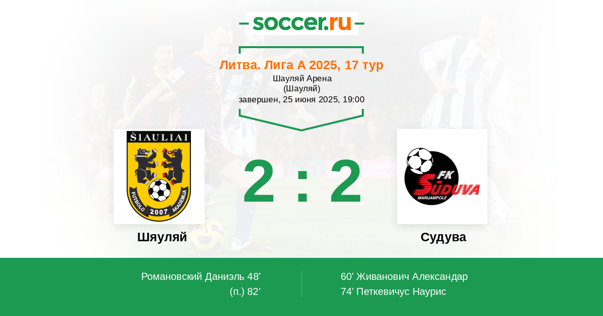 Шяуляй - Судува: обзор матча 25 июня 2025