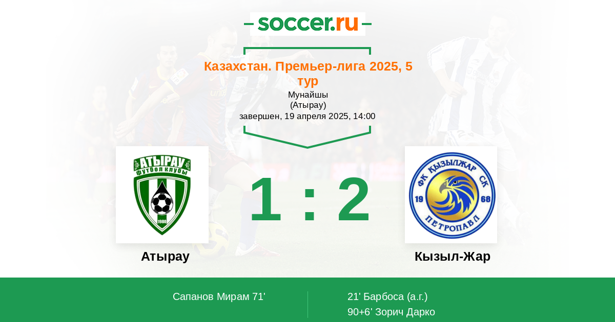 Атырау - Кызыл-Жар: обзор матча 19 апреля 2025