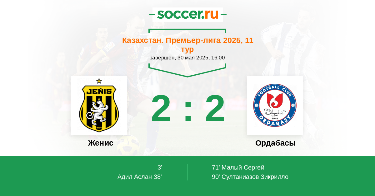 Женис - Ордабасы: обзор матча 30 мая 2025
