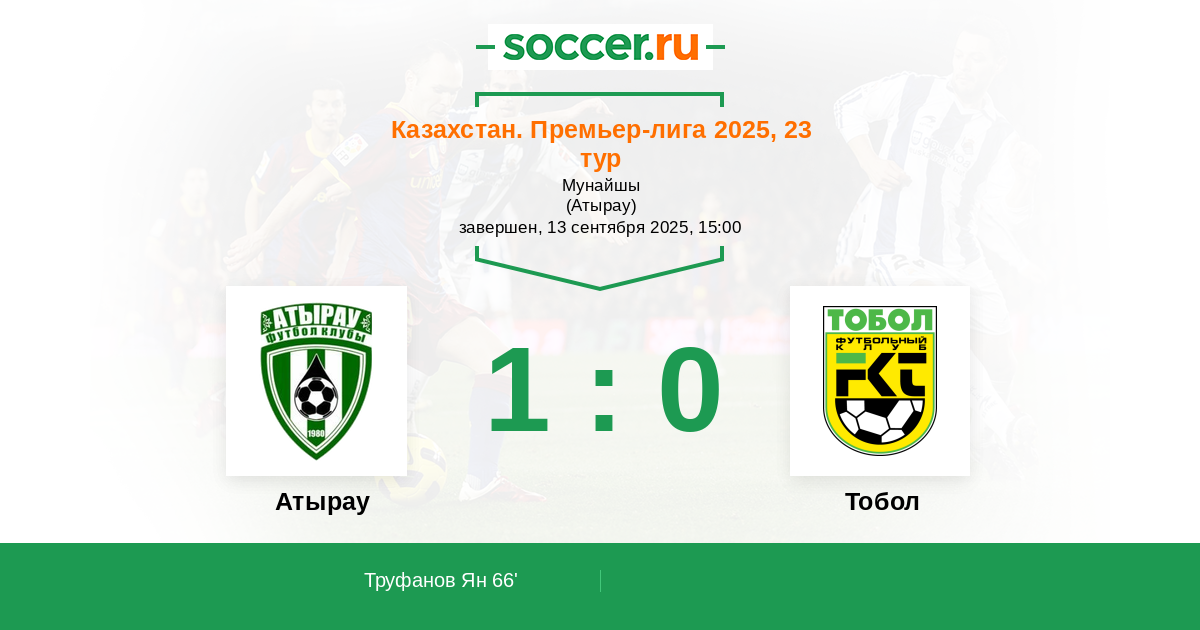 Атырау - Тобол: обзор матча 13 сентября 2025
