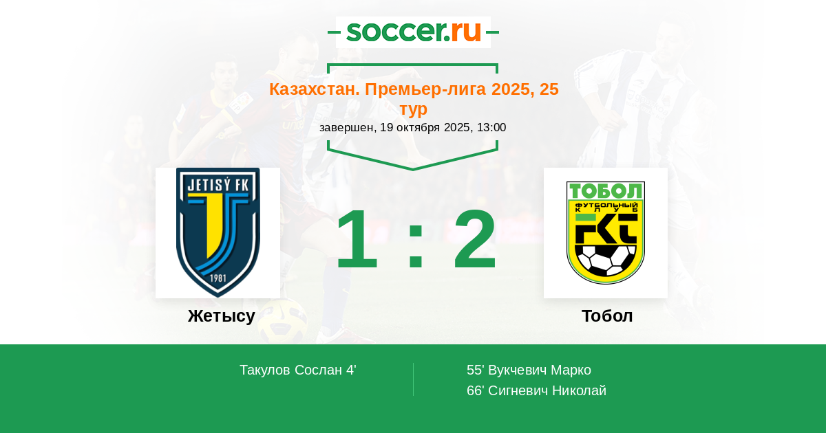 Жетысу - Тобол: обзор матча 19 октября 2025