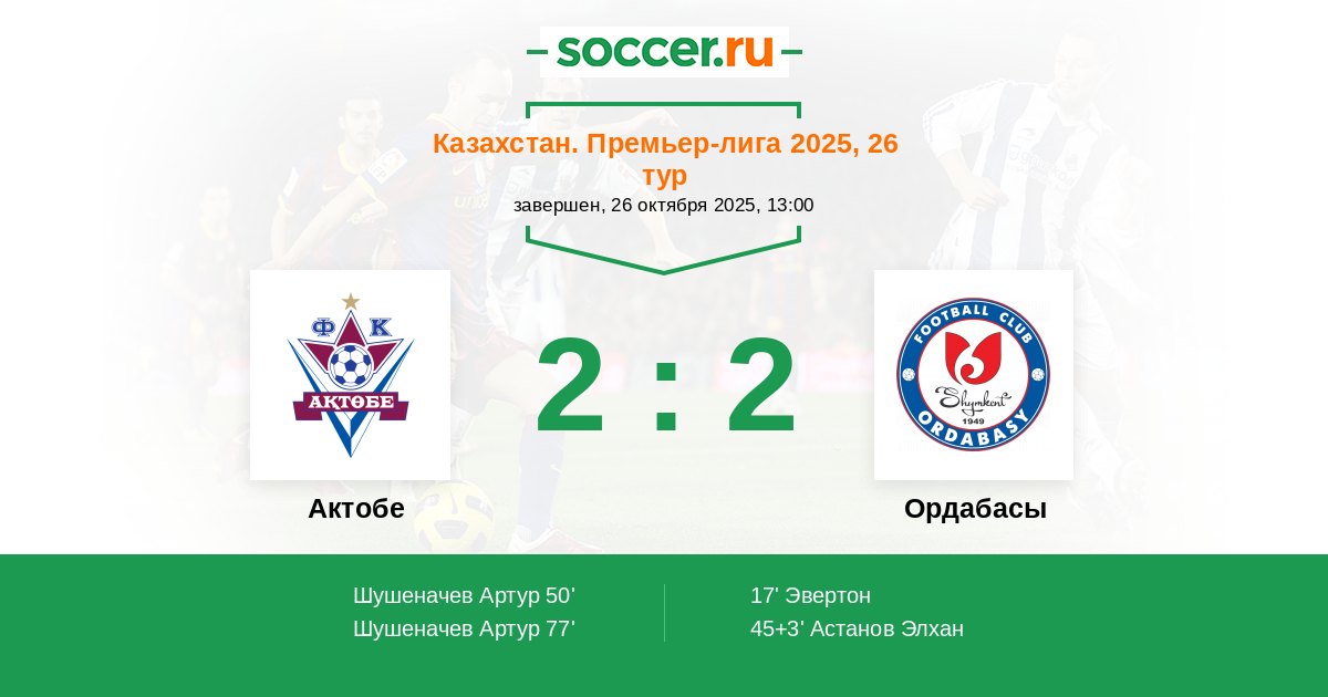 Актобе - Ордабасы: обзор матча 26 октября 2025