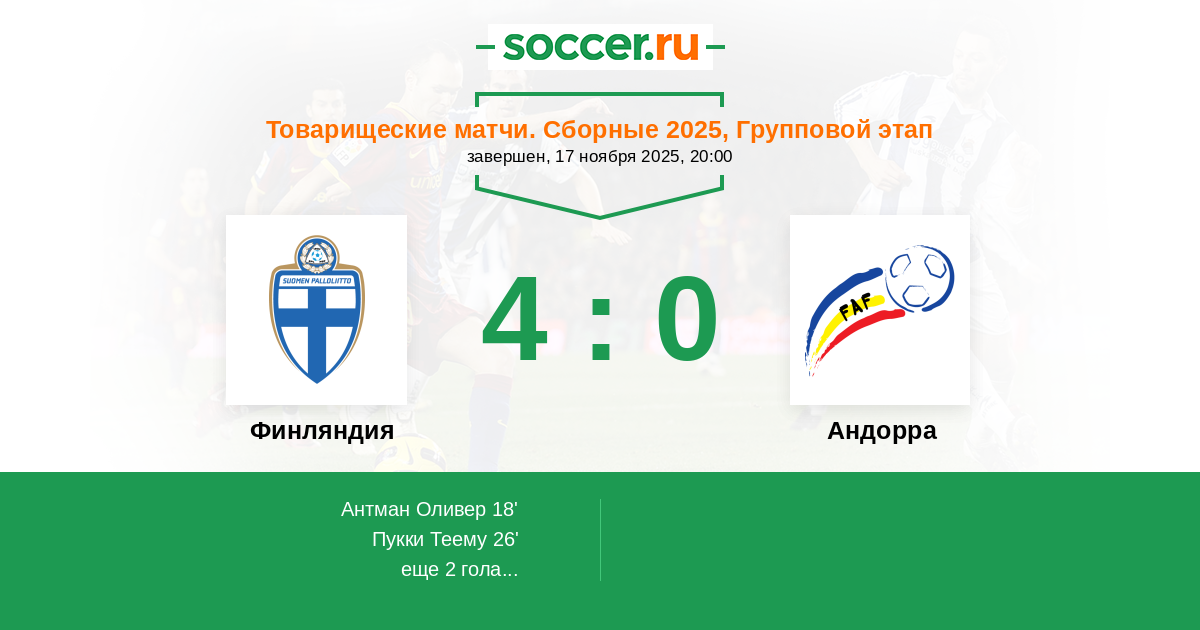 Финляндия - Андорра: обзор матча 17 ноября 2025
