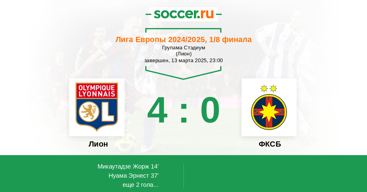 Лион - ФКСБ: обзор матча 13 марта 2025